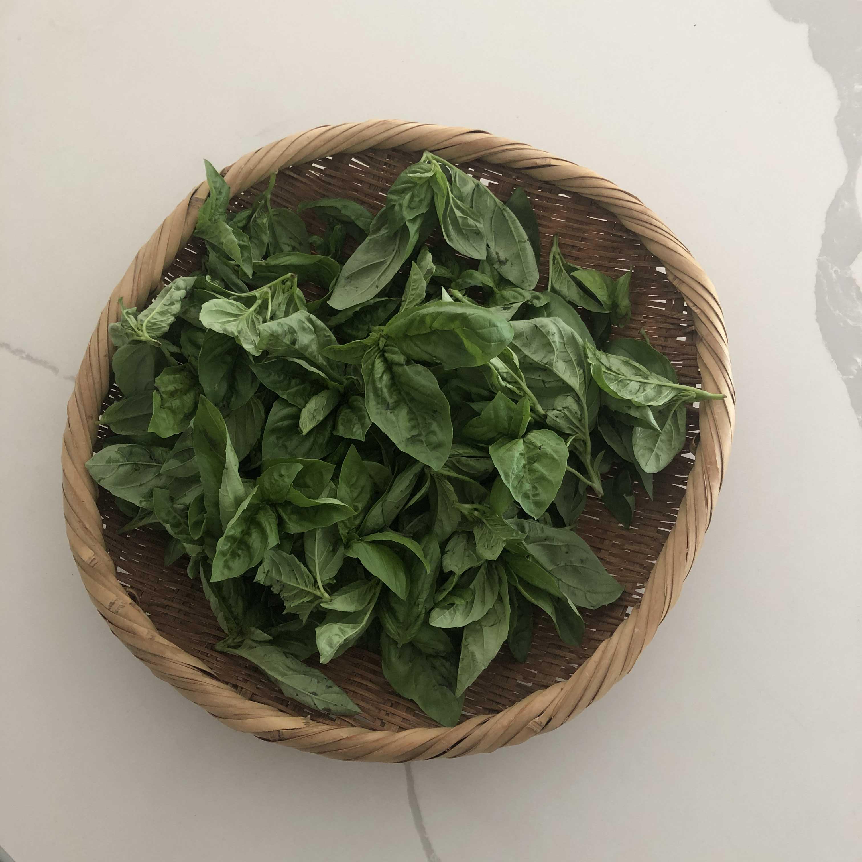 0. 바질은 물에 담가 흔들어 씻은 다음 물기가 없게 잘 말려둔다.